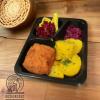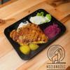 Panierowany kotlet z piersi kurczaka z dodatkami i surówkami