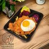 Sznycel wiedeński z jajkiem sadzonym, ziemniaki/frytki, surówki